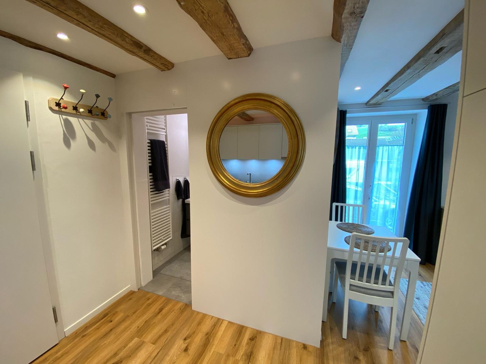 Dieses komplett eingerichtete 1.5-Zimmer-Apartment in Rikon liegt nur 2 Minuten vom Bahnhof entfernt und bietet moderne Wohnkomfort in zentraler Lage – mit Winterthur in nur 20 Minuten per S-Bahn erreichbar.